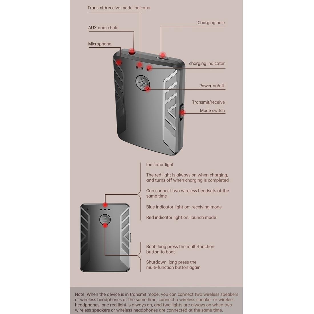 � 1 x T-19 Bluetooth 5.0 2 In 1 Bluetooth Audio Adapter Receiver Transmitter