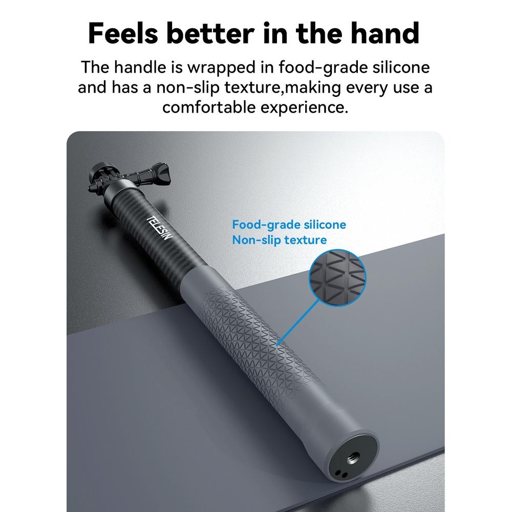� Made of high-quality carbon fiber, high strength, 1/3 lighter than aluminum selfie sticks of the same size.