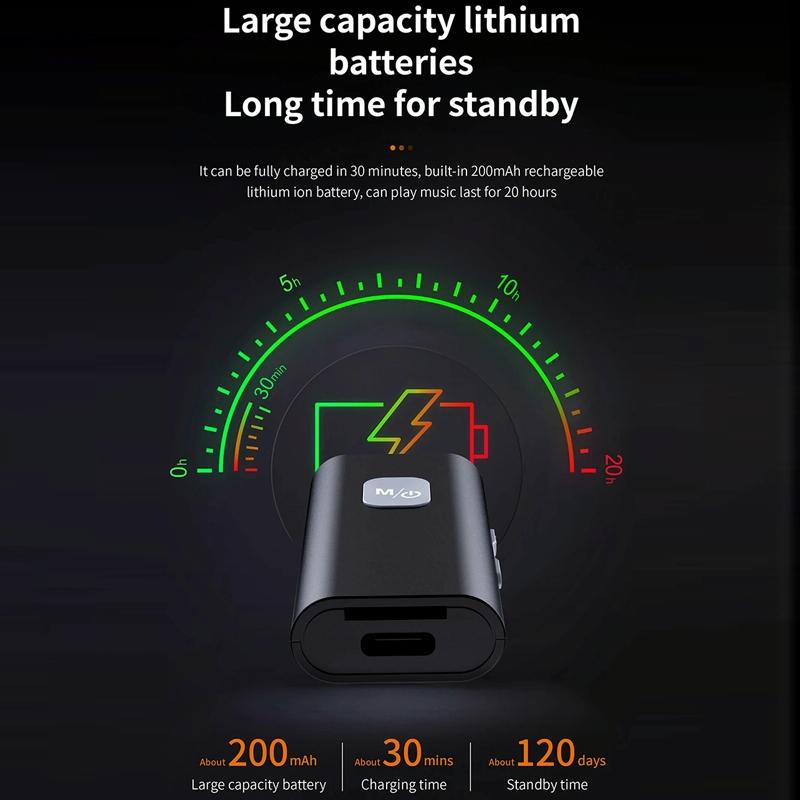 � Extended playback time of up to 20 hours with built-in 200mAh battery