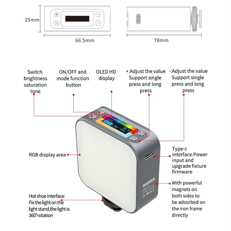 • 1 x D01 66 Leds 2500-9000K Double-Sided Rgb Led Fill Lights